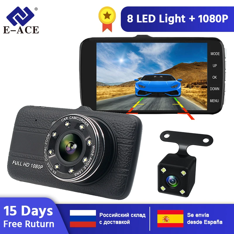 E-ACE Car Dvr 4.0" Full HD 1080P Dash Cam Auto Registrator Dual Lens Night Vision With Rear View Camera Video Recorder ADAS Dvrs
