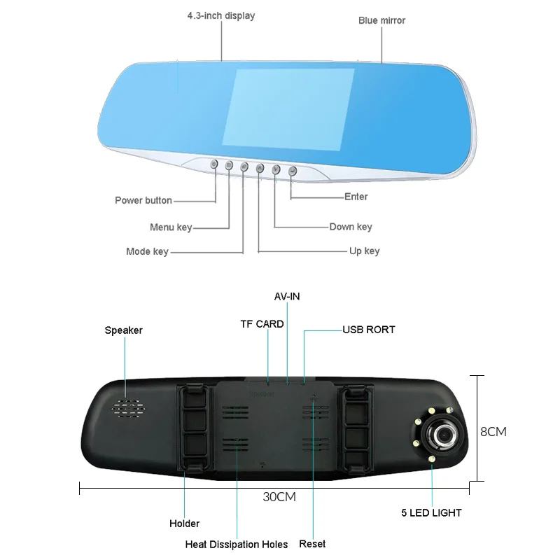 Gallery for E-ACE A16 Car Dvr Rearview Mirror Video Recorder 5 Led Lights Dash Cam DVRs With Rear View Camera T