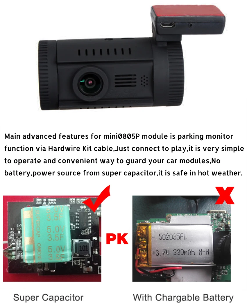 Conkim Mini 0805P Car Dash Camera 1296p 30fps H.264 WDR GPS DVR Video Registrar Parking Sensor Low Voltage Protection Capacitor