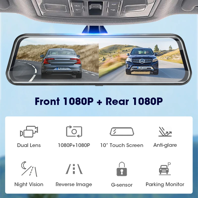 Gallery for Maiyue star 10"IPS Screen Car Dvr Mirror Dash Camera Dash Cam Dual Lens Car Camera Full Hd Drive Re